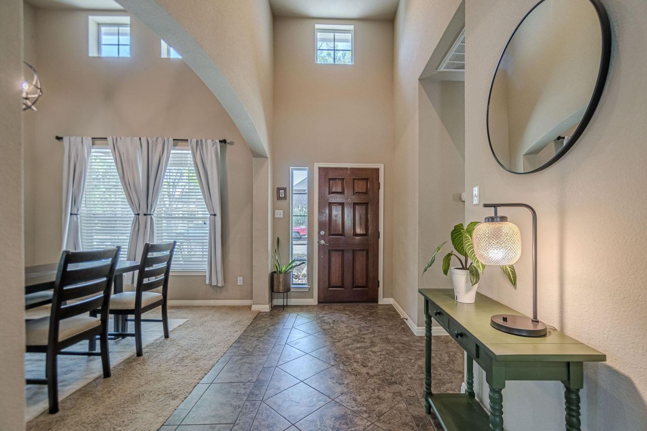 Welcome to Plum Creek, where walkability and everyday convenience really stand out. This well-maintained four-bedroom, 2.5-bath home sits on a classic alley-load lot and features a large covered front porch that looks out over a quiet, tree-lined street. It is a great spot to relax and enjoy the neighborhood. Inside, the open layout brings in plenty of natural light and creates an easy flow for daily living. The kitchen is spacious, featuring a gas range, plenty of wood cabinets, and room to gather. The primary bedroom offers a comfortable retreat with dual vanities, a soaking tub and a separate walk in shower. Bedrooms two and three share a Jack and Jill bathroom, while the fourth bedroom works well as an office or guest room and includes its own private covered porch with direct access outside. Out back, you will find a patio perfect for morning coffee or weekend cookouts. Living in Plum Creek means having access to a wide range of amenities just steps from your door. There are shaded pocket parks with playscapes, a golf course, two swimming pools, bocce pits, pickleball and basketball courts, a dog park, and several larger community parks. Residents also enjoy a private 30 acre lake for fishing along with walking trails throughout the neighborhood. You can walk to nearby schools, coffee shops, restaurants, and shopping including Sprouts. It is a rare blend of small town charm and everyday convenience that is hard to find anywhere else.