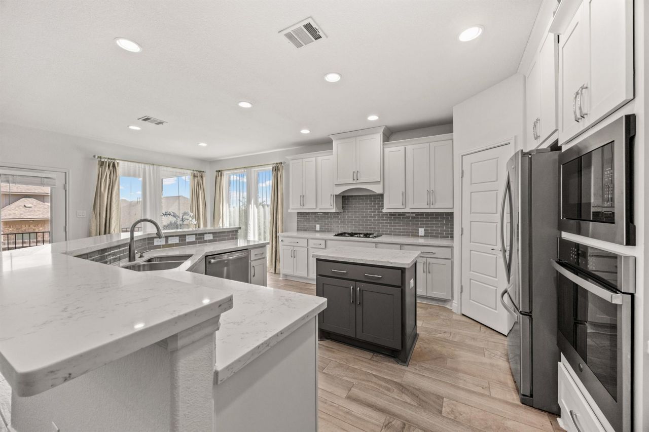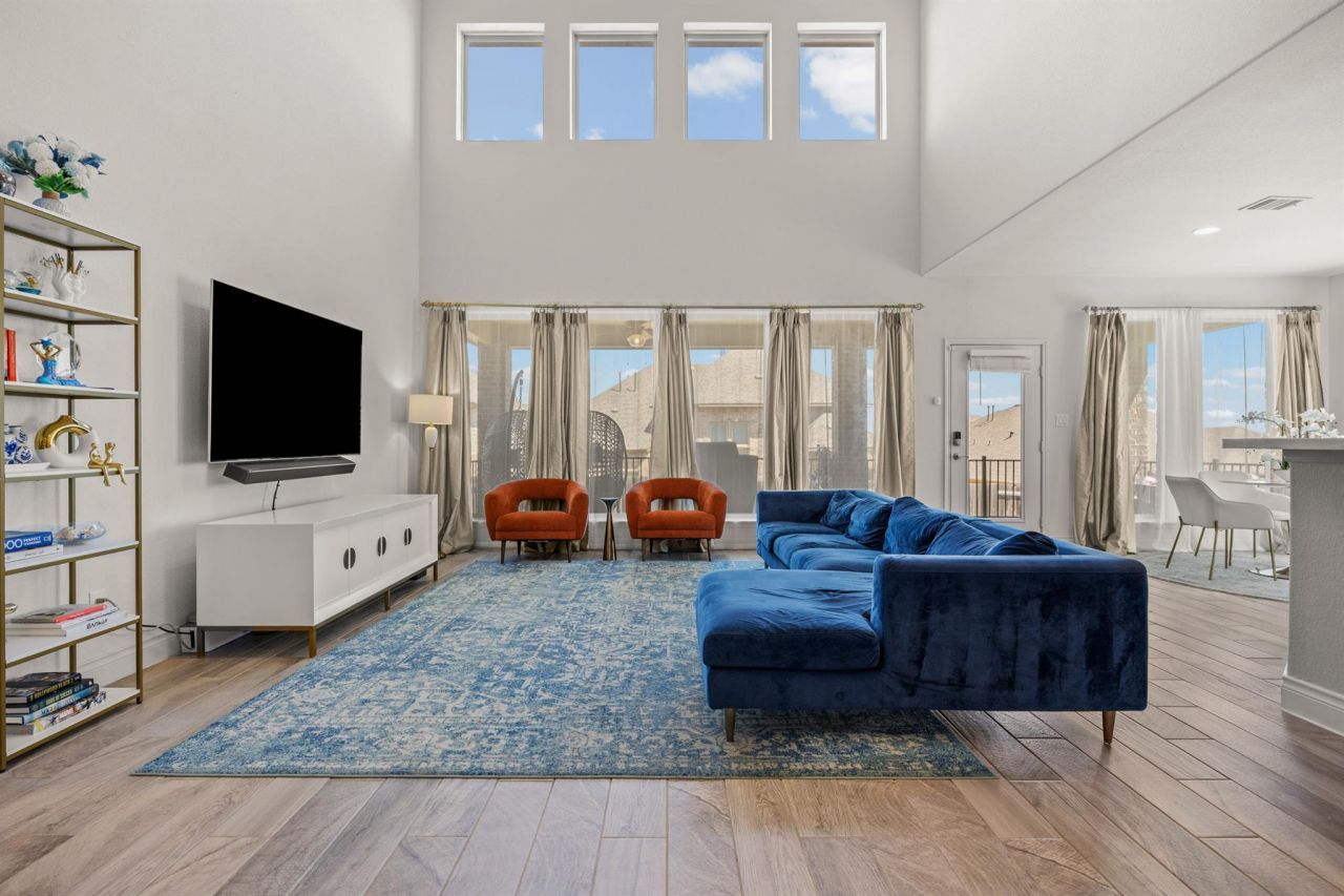 Welcome to 516 Honeybird Ln?a beautifully designed luxury home in Georgetown, TX offering modern elegance, functional living, and resort-style amenities. This move-in ready home is ideal for buyers seeking space and a lifestyle upgrade. Inside, youll find a dedicated home office and abundant natural light from large east-facing windows. The open-concept layout features a chef-inspired kitchen with a spacious island, built-in stainless steel oven, dishwasher and microwave, plus a seamless flow into the main living areas?perfect for entertaining. The primary suite offers a true retreat with a spa-like bathroom and a custom-built walk-in closet connected directly to the laundry room for ultimate convenience. Upstairs, enjoy a versatile loft/flex space and a fully equipped media room with built-in speakers, ideal for movie nights or game days. Additional upgrades include a water softener and designer finishes throughout. Step outside to a decorative tiled covered back porch with ceiling fans, perfect for relaxing or hosting year-round. Residents enjoy premier HOA amenities including 3 pools, a clubhouse, splash pad, parks, and sport courts for volleyball, basketball, pickleball, and tennis, plus access to a scenic golf course. Living in Georgetown means enjoying a charming historic downtown, lower tax rates, top-rated schools, and a strong sense of community?all within easy reach of Austins major employers, dining, and entertainment. If youre searching for a turnkey Georgetown luxury home with a media room, home office, and resort-style amenities, this one checks all the boxes. Schedule your private showing today and experience elevated living at 516 Honeybird Ln!